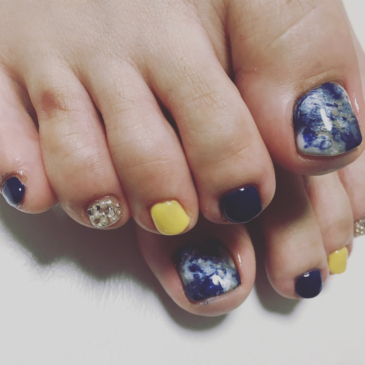 しずく 公式ブログ フットネイル ネイビー イエロー Powered By Line